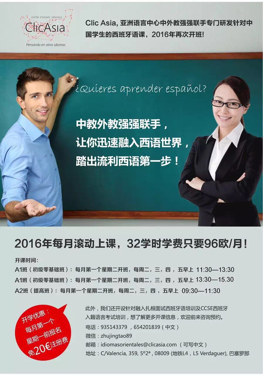New courses of Spanish language for Chinese-Level A1 and A2, Chinese-speaking Spanish teacher and Spanish native teacher.
